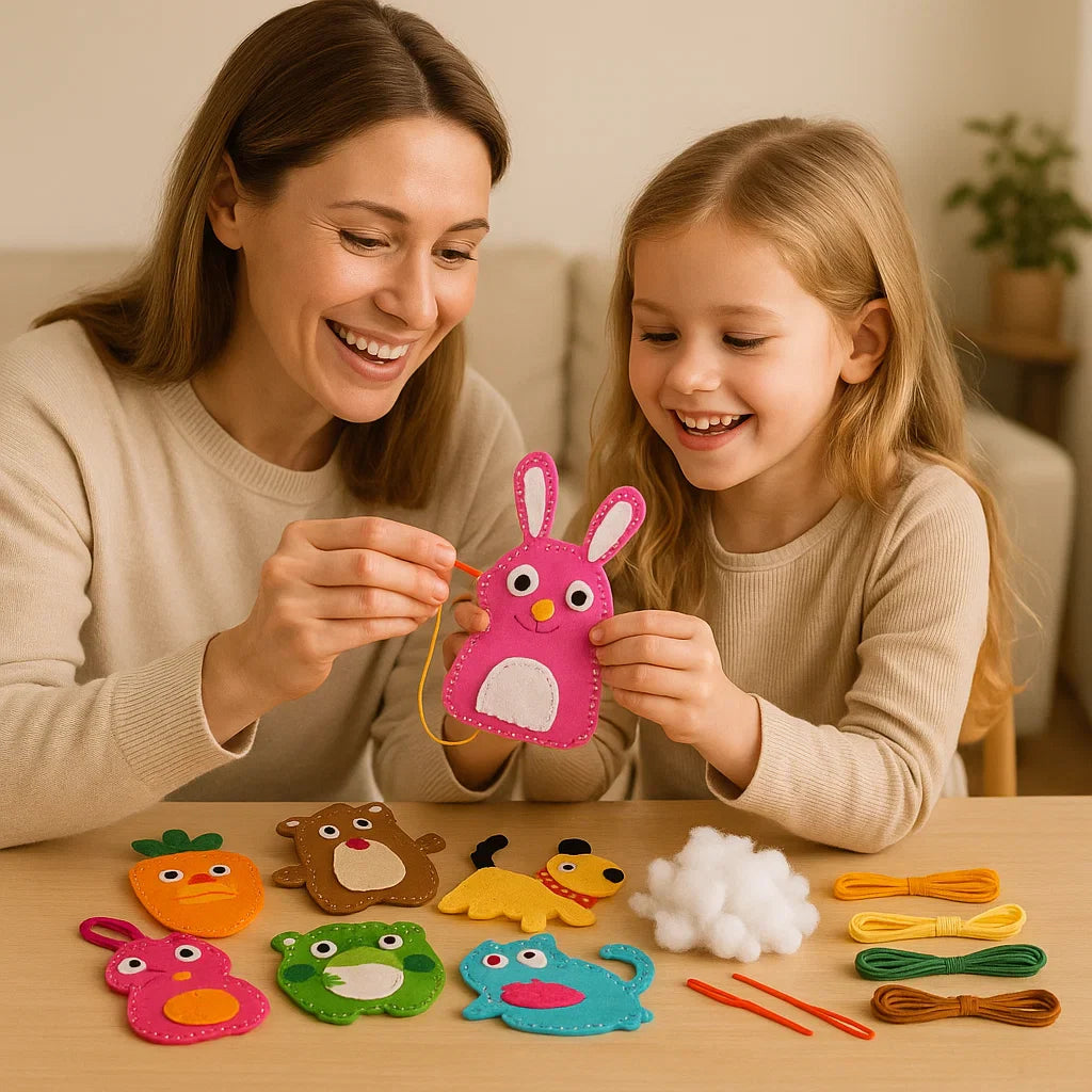 Tämä ompelusetti muuttaa paikallaan olon merkitykselliseksi. Lapset voivat luoda omia söpöjä eläinhahmojaan, ommella ylpeydellä ja kokea itse tekemisen ilon. Helppo tapa herättää mielikuvitus eloon samalla kun harjoitetaan motorisia taitoja ja kärsivällisyyttä - täysin stressittömästi.