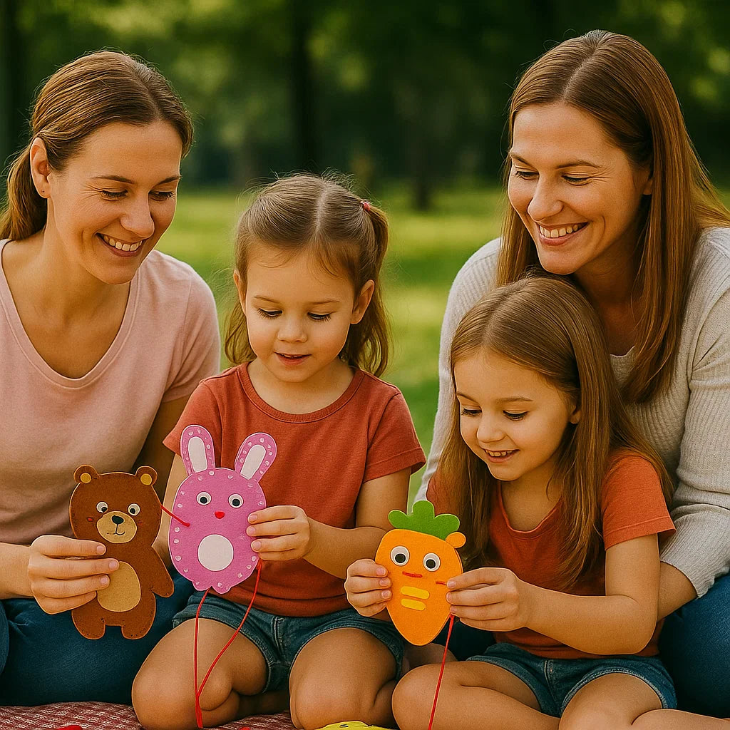 Kun lapset ompelevat itse hahmojaan, he harjoittavat sekä käsiään että aivojaan. He oppivat seuraamaan vaiheita, keskittymään ja olemaan varovaisia – ja samalla pitämään hauskaa. Turvallinen ja rauhoittava askartelu, jonka avulla lapset voivat löytää ilon omilla käsillään luomisesta.