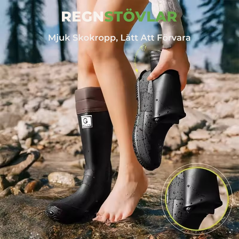 - Typ: Vikbara regn- och utomhusstövlar med bred tåbox