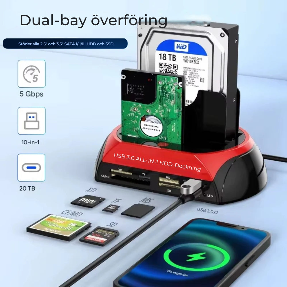 ✅ Kompatibel med alla enheter – IDE, SATA, SSD och minneskort i samma lösning