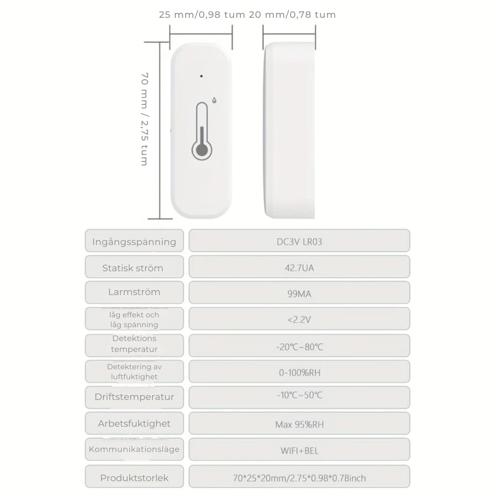 - Tyyppi: Wi-Fi-lämpö- ja kosteusmittari sisätiloihin