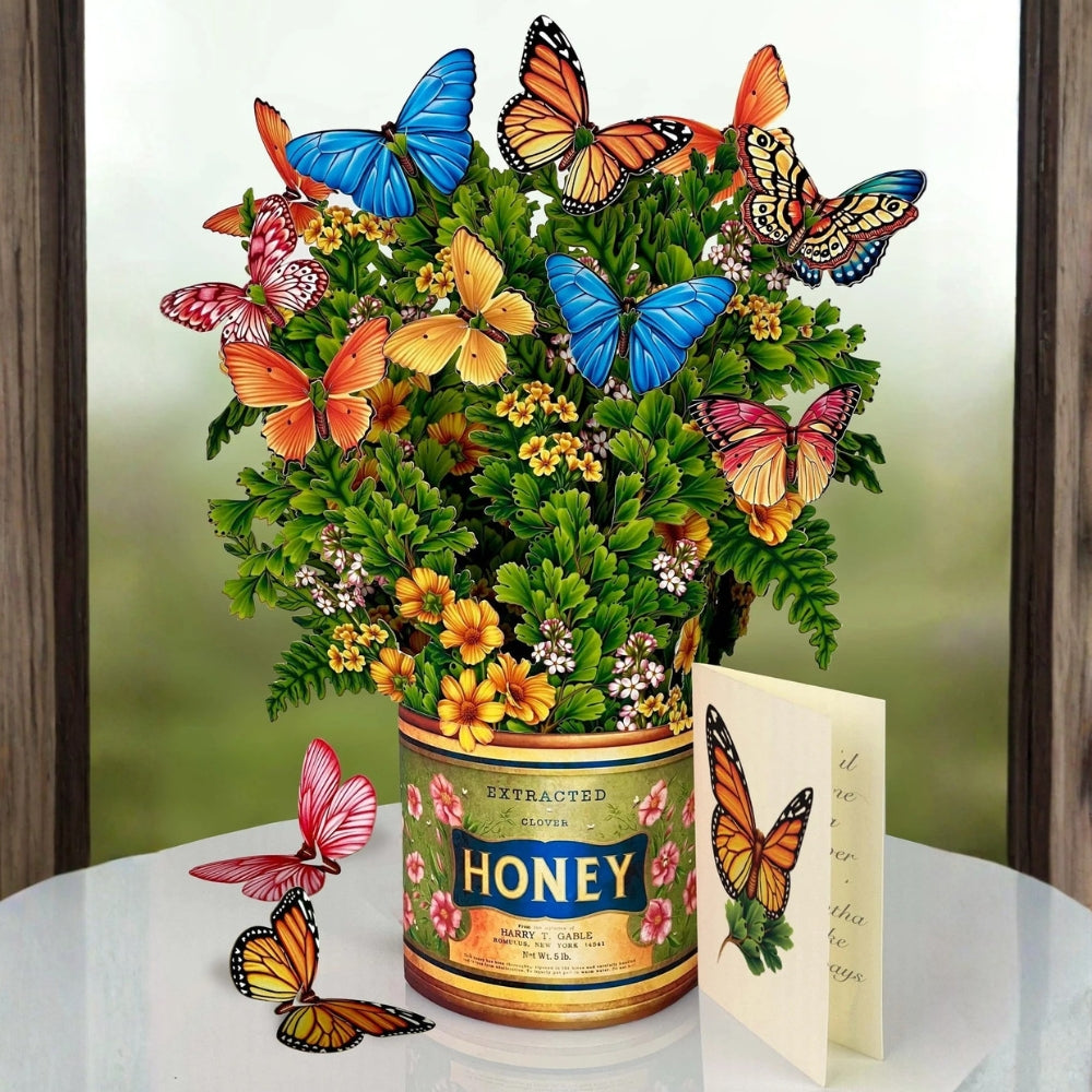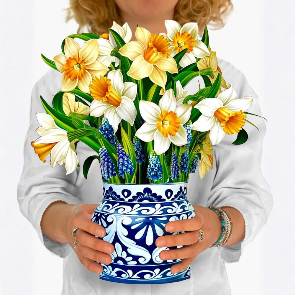 Buketten levereras platt och kan enkelt formas till sin fulla volym. Resultatet blir ett personligt dekorationsinslag som passar lika bra på bord, hyllor och fönsterbrädor.