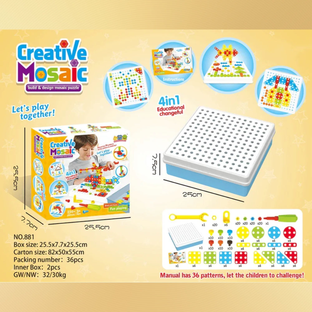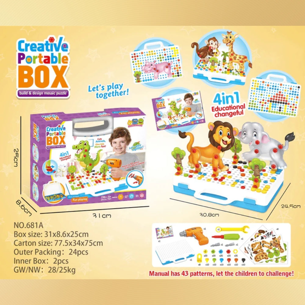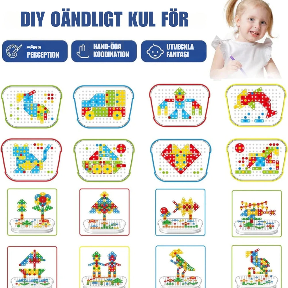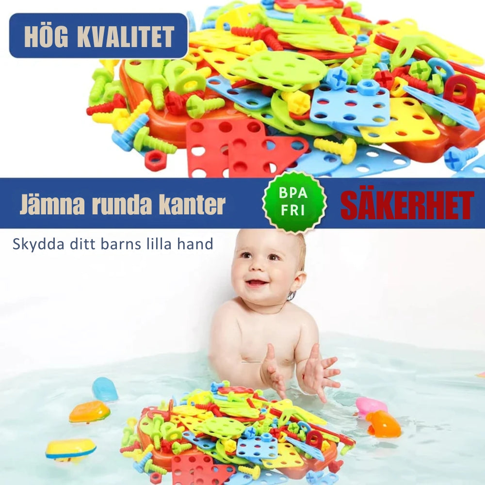Håller barn sysselsatta och låter dem utforska, bygga och lära på egen hand. Med den barnvänliga borrmaskinen skruvar de själva i muttrar och bultar – perfekt för grundläggande byggförståelse och matematisk logik.