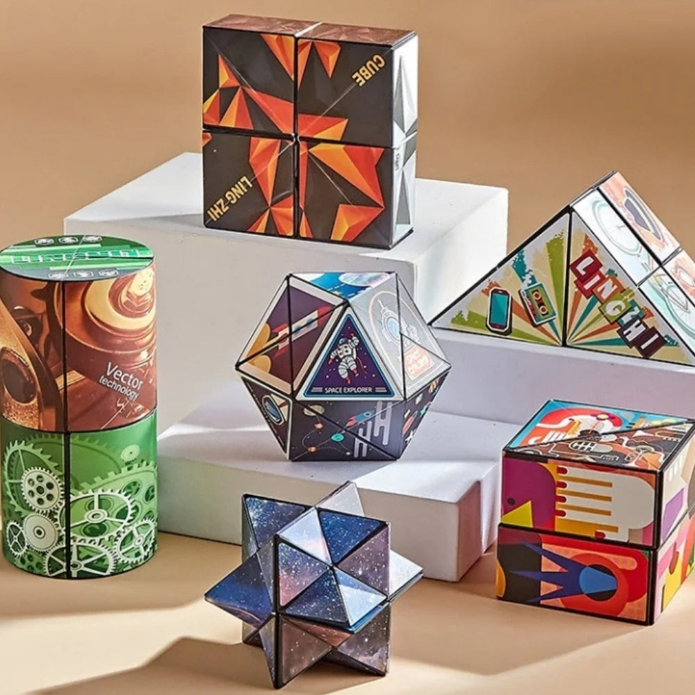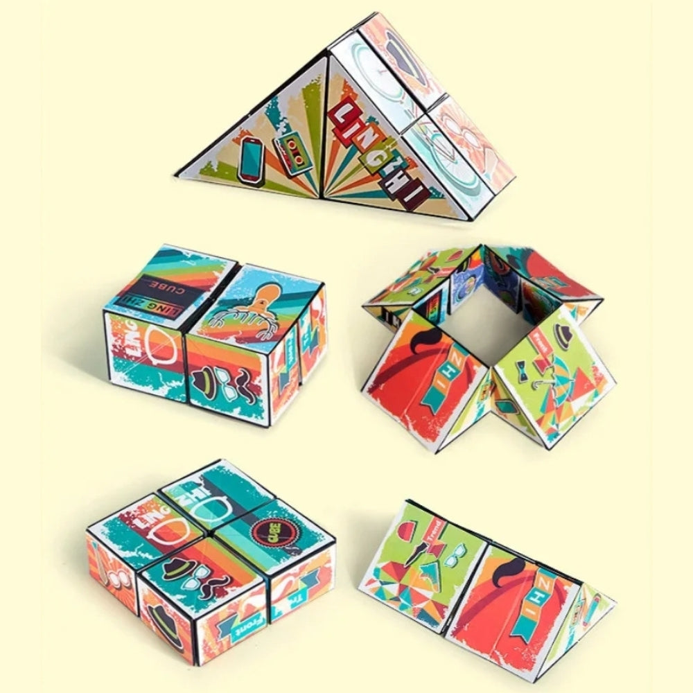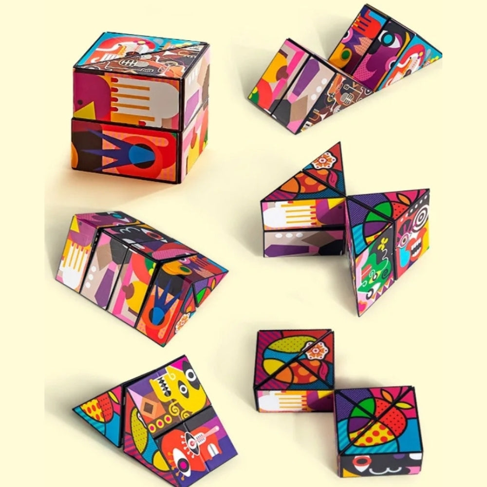 Med 3D Infinity-pusselkuben kan både barn och vuxna utforska fantasifulla former genom att vika och vrida kuben i olika riktningar. Varje rörelse avslöjar en ny geometrisk struktur, vilket gör den till ett roligt och engagerande sätt att stimulera hjärnan. Den kompakta storleken gör den perfekt för resor, skolan eller hemmet. Ett utmärkt val för stresslindring och kreativ lek.