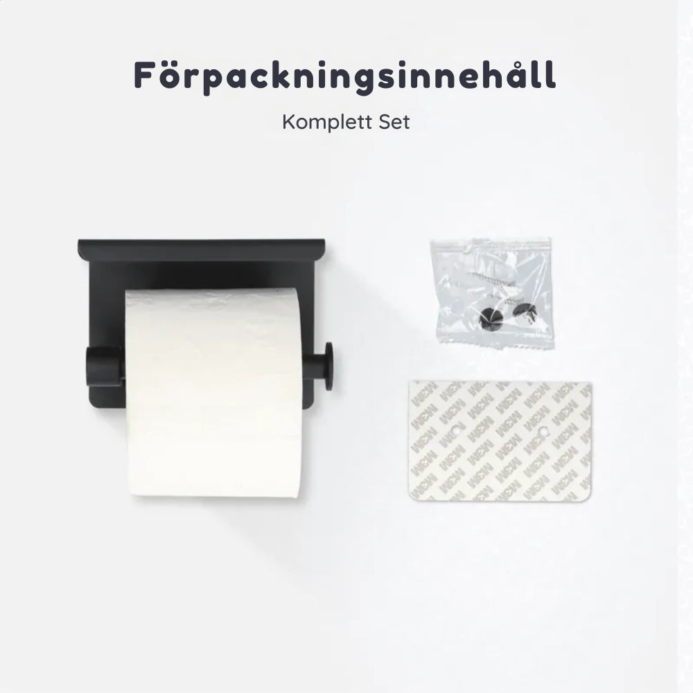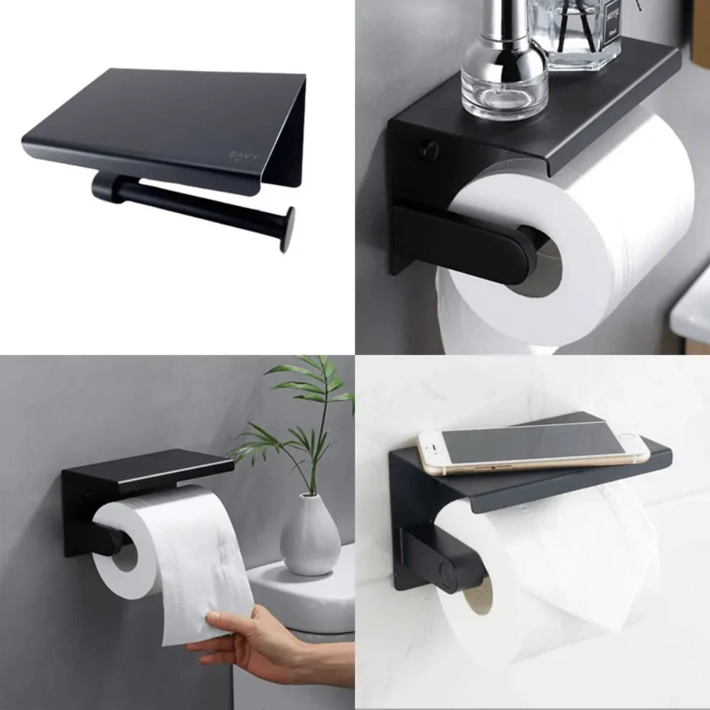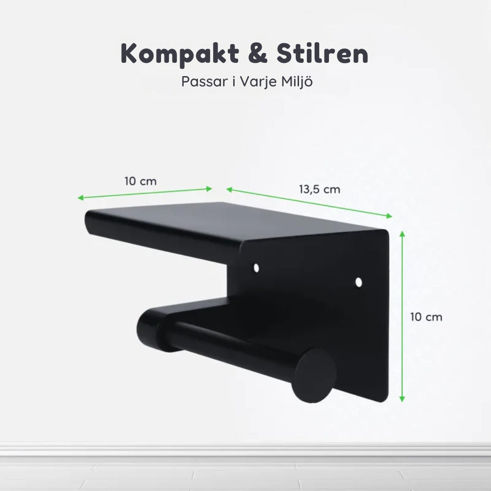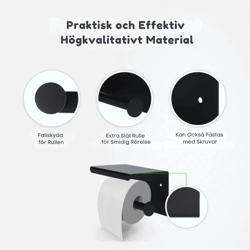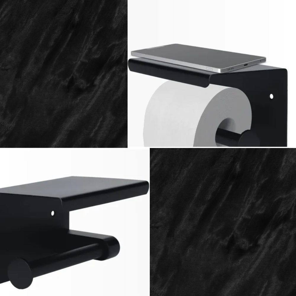 Toalettrullehållare med Hylla – Självhäftande eller Borrning – Svart